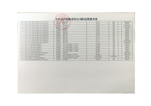 大慶東油15001隊(大慶油田)資質(zhì)證書