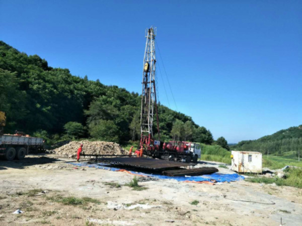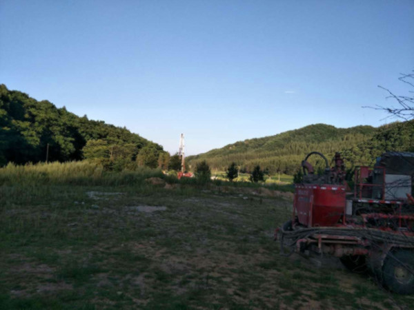 圖片新聞:公司院內(nèi)的地?zé)嵩囼?yàn)一井,下套管施工(2017年史文全報道)
