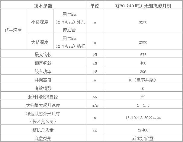 XJ700(40噸)無繃繩修井機是對傳統(tǒng)修井機的一次開創(chuàng)性變革,它取消了地面繃繩,使得修井機不再受油田地理位置和地表狀況的限制,免除了作業(yè)前后安裝和拔除固定錨的工序,大大縮小了整機的安裝和作業(yè)占地面積,縮減了作業(yè)時間,**了作業(yè)復雜度,使得在各類惡劣和復雜的地面條件和氣候環(huán)境下的作業(yè)難度**,效率**,尤其適合城區(qū)內(nèi)部、戈壁沙漠等狹小或復雜地形的修井作業(yè)。